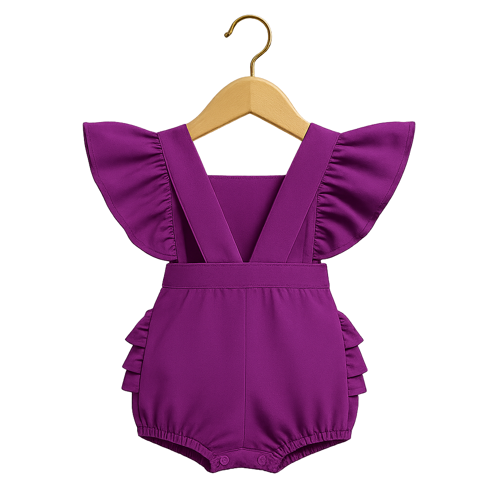 Our Embroidered Ruffle Jumper combines classic charm with a modern touch. The rich royal purple color provides a beautiful base for the stunning, hand-embroidered panel across the chest, which showcases a detailed tapestry of bright colors and patterns. Designed for both style and comfort, this jumper features adorable flutter ruffles on the sleeves and bottom, adding a playful, whimsical feel. Crafted from a soft, high-quality fabric, it is gentle on your baby’s delicate skin. The convenient snap closure at the bottom makes diaper changes effortless, while the stylish design ensures your little one stands out from the crowd. A beautiful addition to any special occasion outfit or a charming piece for a photoshoot.